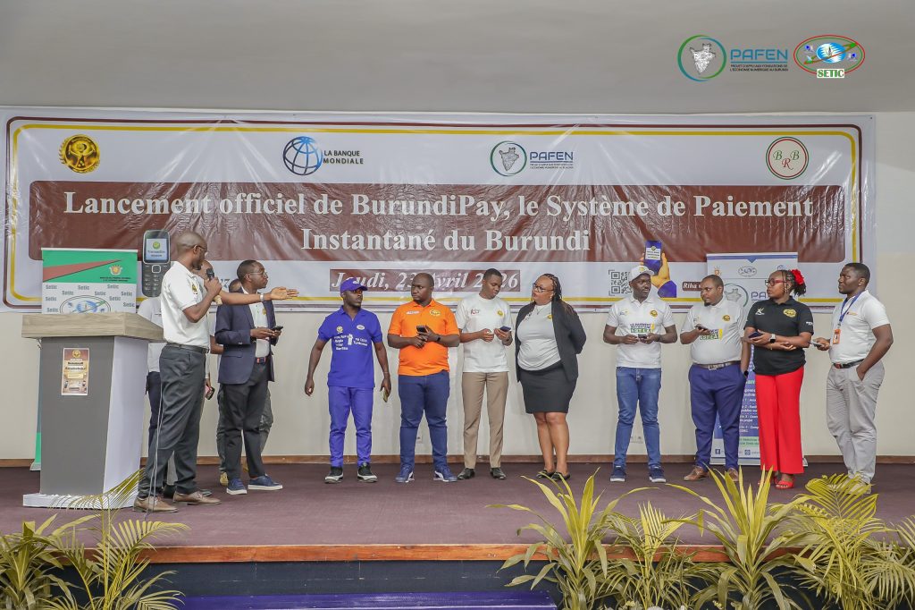 Le Gouverneur de la Banque de la République du Burundi, M. Édouard Normand BIGENDAKO et le Secrétaire Exécutif du SETIC et Coordonnateur du projet PAFEN, M. Bienvenu IRAKOZE, procèdent au lancement officiel du système de paiement instantané du Burundi, « BurundiPay », sous le financement du projet PAFEN, le 23 avril 2026. De ce fait, le Burundi devient le 22ème pays Africain à se doter d’un système de paiement instantané, sécurisé, interopérable et accessible.